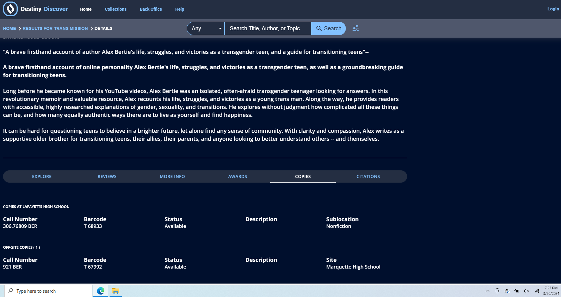 Located in the following libraries on March 26, 2024: